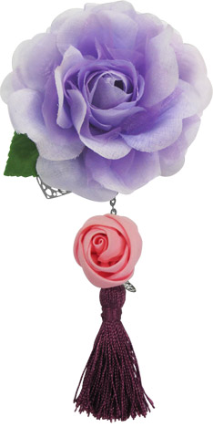 ヒロイン「ほたる」が姫に変化した時に身につける紫の薔薇とタッセルの飾りを再現したコサージュクリップとチャームのセットです。