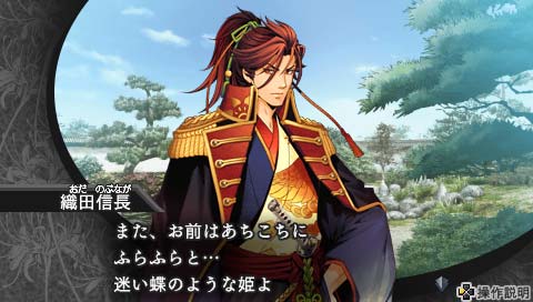 城内で出会った信長。
