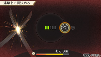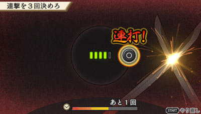 - ボタン入力に一定回数成功するたびに「強襲」が発動