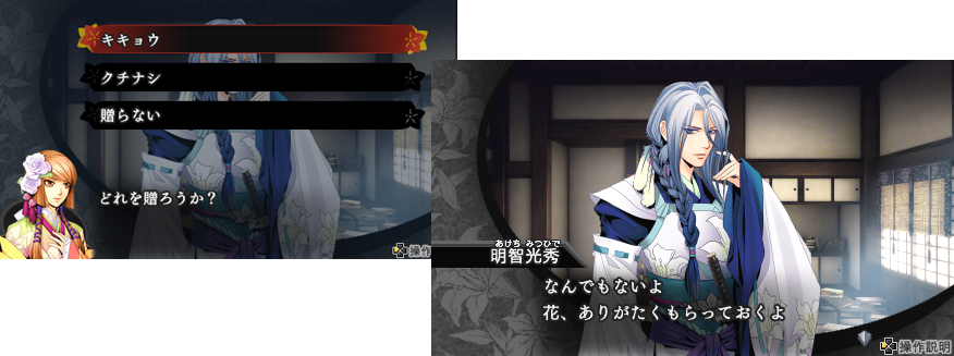 「花」を交流の際に恋愛対象に贈ると、縁が高められる。