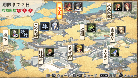 密命の合間には各武将のもとで交流をして、縁を高めよう。