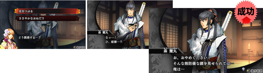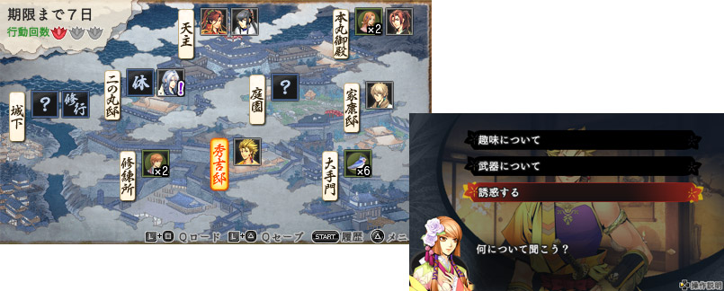 一日は朝、昼、夜の3つの時間帯に分かれているが、夜の交流では、くのいちらしく「誘惑」が可能。