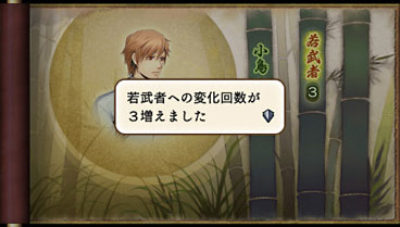 若武者への変化を記憶しました。行動回数に余裕があるときに変化回数を増やしておけば、状況に合わせて変化するものが選べます。