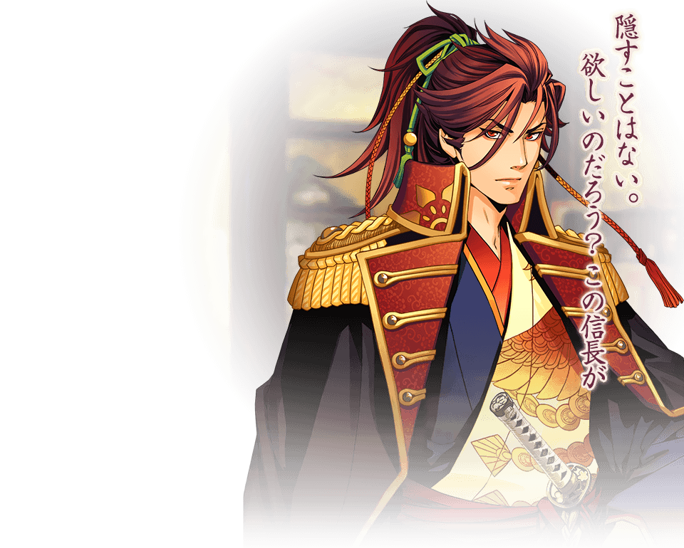天下人に限りなく近い、織田家の総大将。 型破りな発想で人心を惹きつけるが、そのぶん敵も数知れず。 傲岸不遜(ごうがんふそん)なカリスマで、生に対して享楽的な思考を持つ。 『下天の華 夢灯り』サンプルボイス 『下天の華 with 夢灯り 愛蔵版』サンプルボイス