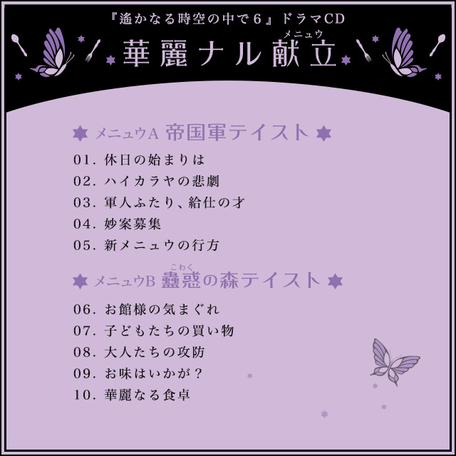食にまつわる、主要キャラクターたちの賑やかな掛け合いが楽しめるドラマCD。