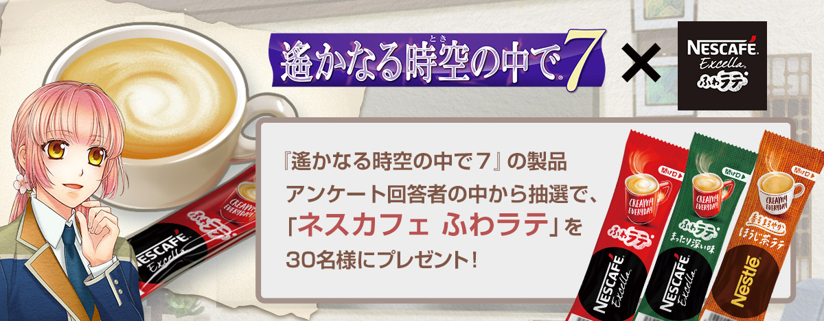 『遙かなる時空の中で7』製品アンケート回答者の中から抽選で、ゲーム内にも登場するネスカフェ スティックミックス製品を30名様にプレゼント。