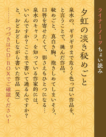 永泉&橘 友雅(保志総一朗&井上和彦)/語り:多 季史(櫻井孝宏)