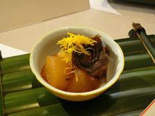 完成した「ブリ大根」。和洋中さまざまな料理を前に、ご来場いただいたみなさんの表情も自然とほころんでいました。