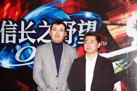 北京中栄巡遊網絡科技有限公司・時総経理(左)と株式会社コーエー ソフトウェア3部部長・藤重和博