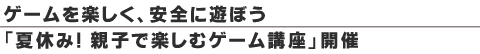7月25日、コーエーは社会貢献活動の一環として、横浜市港北区 「いきいき会館」にて、「夏休み! 親子で楽しむゲーム講座」 を開催いたしました。 これは、ゲームに関心を持つご父兄とお子様を対象に、楽しみながらゲームへの理解をより深めていただくことを目的として企画したものです。 会場には100人以上の地域住民の方々がお集まりいただき、大変盛況で賑やかなイベントとなりました。