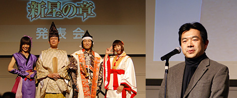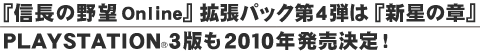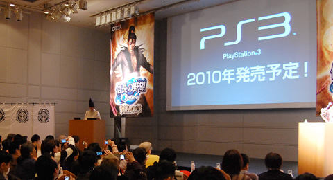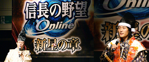 11月29日、拡張パック第4弾 『信長の野望 Online 新星の章』 製品発表会を開催いたしました。 2010年3月のサービス開始を予定しています。 また、プレイステーション2、Windowsに加え、プレイステーション3版を2010年に発売することも明らかにいたしました。