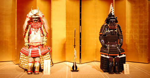 | 発表会場に展示された本物の甲冑。 ※甲冑工房 丸武産業協力 |