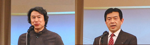 | (左)ゲームデザイナー シブサワコウ 「コーエーは一貫して歴史エンターテインメントを作ってきた。今回、新しいライブエンターテインメントを作り上げ、さらに盛り上げていきたい。」 (右)株式会社コーエー 代表取締役執行役員社長COO 松原健二 「コーエーにしかできないイベントにしたい。」