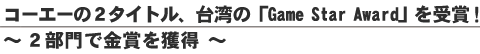 2010年2月3日、当社が開発いたしましたゲームソフト2 タイトルが、台湾で行われた 「Game Star Award」 にて、このたび以下の通り受賞いたしました。