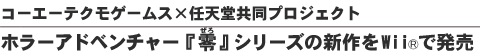 株式会社コーエーテクモゲームス (本社 : 神奈川県横浜市、 代表取締役社長 : 松原健二、 以下、コーエーテクモゲームス) は、 ホラーアドベンチャー 『零』 シリーズの新作を Wii 専用ソ