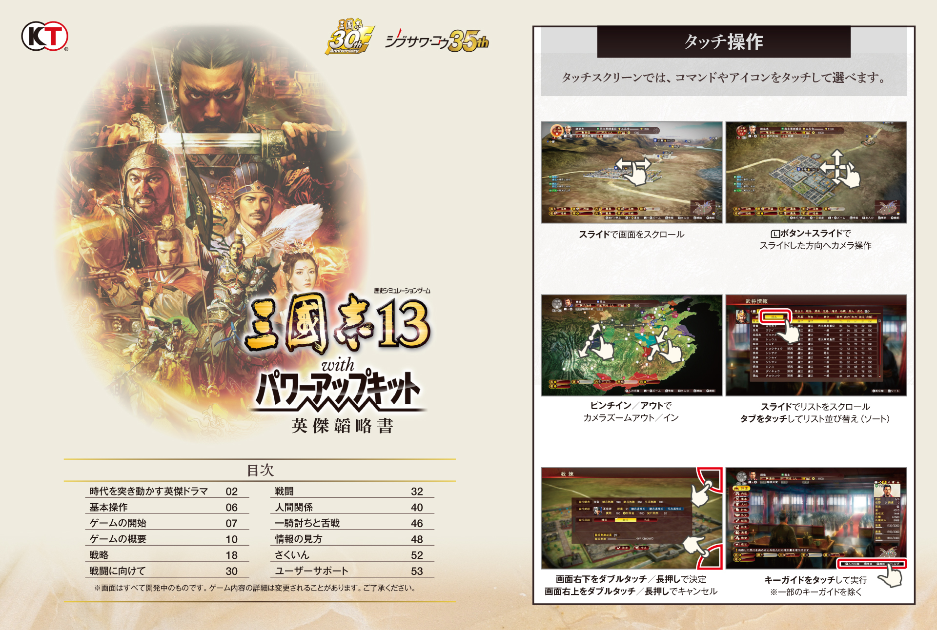 時代を突き動かす英傑ドラマ | 基本操作・ゲームの開始 | ゲームの概要 | 戦略 | 戦闘に向けて | 戦闘 | 人間関係 | 一騎討ちと舌戦 | 情報の見方 | ユーザーサポート |