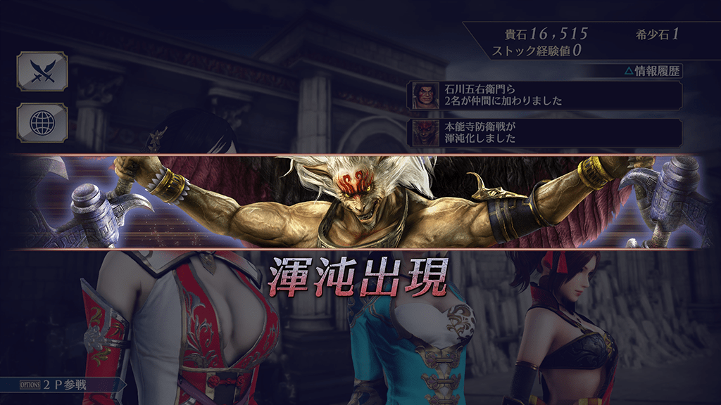 まれに戦場に渾沌が出現することがあります。渾沌が出現したバトルは、「修羅」より難しい難易度の「渾沌」を選択できるようになります。