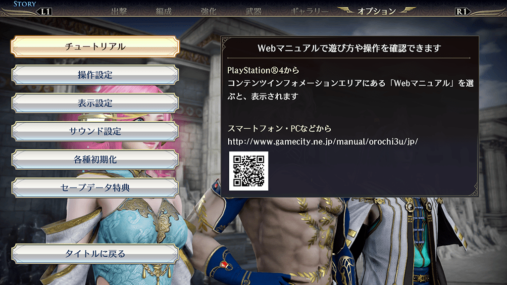 プレイ環境の設定、チュートリアルの確認、成長初期化ができます。