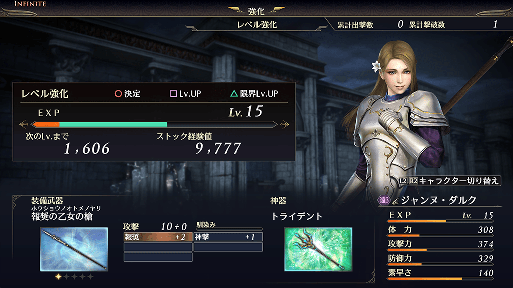 戦闘で獲得したストック経験値を割り振ることでレベルアップさせられます。