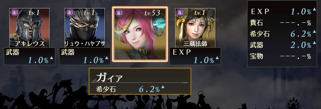 サポートメンバーのキャラクターはそれぞれ、以下の5つの効果のうちどれかを持ちます。編成画面で確認できます。