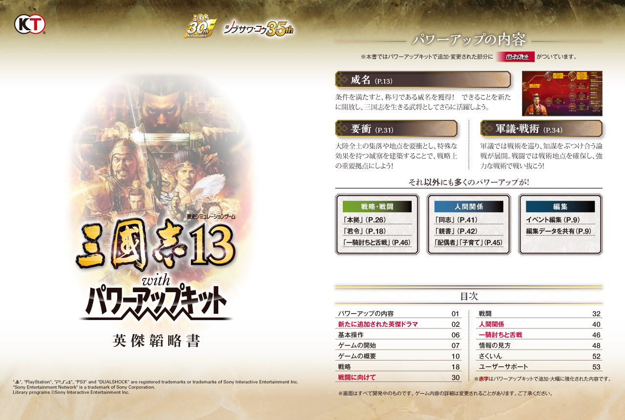 新たに追加された英傑ドラマ | 基本操作・ゲームの開始 | ゲームの概要 | 戦略 | 戦闘に向けて | 戦闘 | 人間関係 | 一騎討ちと舌戦 | 情報の見方 | ユーザーサポート |