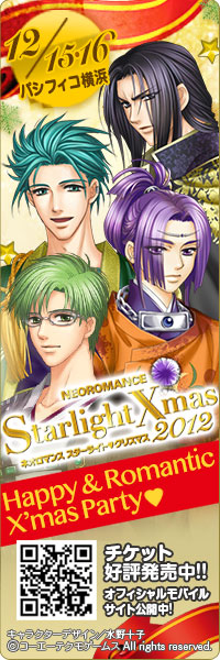 「雪降る街のCeremony」歌:平川大輔 (ベルナール) 収録CD:<ヴォーカル集>「ネオ アンジェリーク ~sincerely~」(KECH-1455) 「海霧のかなたへ」歌:伊藤健太郎(八木沢雪広) 収録CD:<ヴォーカル集 >「金色のコルダ3 ~旋律は深く甘美く~」 (KECH-1553) 「風織の衣をその肩に」歌:中原 茂(藤原幸鷹)&井上和彦(翡翠) 収録CD:<バラエティCD>「遙かなる時空の中で2 小春日和」(KECH-1407/8) ★井上和彦さん 100回出演記念コーナー 「終わらないクリスマス」歌:井上和彦(風早) 収録CD: <クリスマス・ヴォーカル集>「ネオロマンス・クリスマス ~聖夜にラブソングを~」 (KECH-1522) |