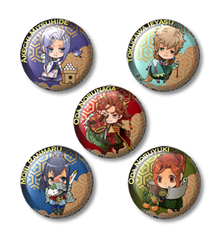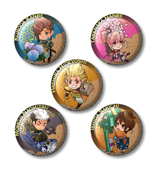 ③-1 ちみっこ缶バッジ5種(織田信長、明智光秀、徳川家康、森 蘭丸、織田信行) ③-2 ちみっこ缶バッジ5種(羽柴秀吉、百地尚光、黒田官兵衛、竹中半兵衛、石田佐吉)