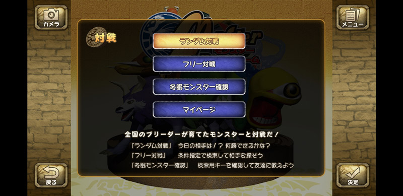 自動でマッチングされるランダム対戦と、友達のモンスターを指定できるフリー対戦の2つのモードを楽しむことができます。