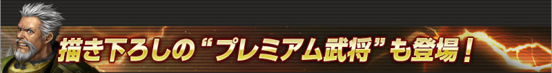 定期的に開催される限定イベントでは、描き下ろしイラストの特別な無双武将、「プレミアム武将」が登場するぞ。見た目はもちろん、通常の武将とは異なる能力をもつので、気になる「プレミアム武将」をゲットして、 コレクションに加えよう。