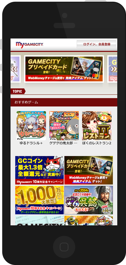 「my GAMECITY」は、日々進化を続けるスマートフォンにも対応しています。