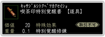 NPC“喫茶姫”から“月替り特典”として《喫茶印特別覚醒書》を獲得できます。