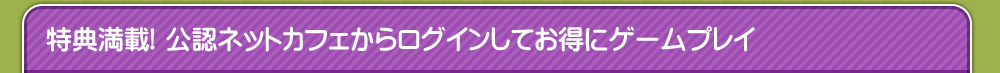 ※公認ネットカフェで、各タイトルをプレイするには、製品版アカウントかネットカフェアカウントが必要です。