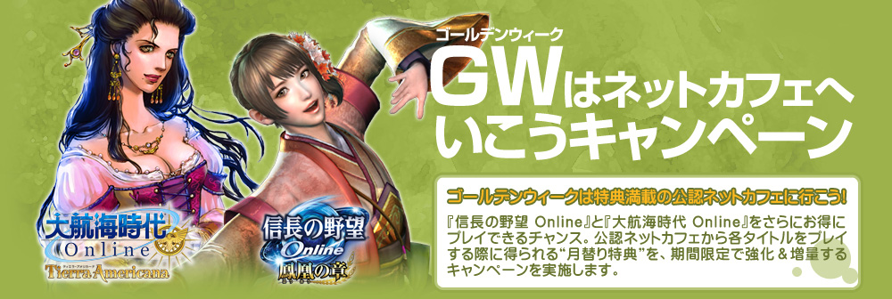 『信長の野望 Online』「公認ネットカフェサービス」 | 『大航海時代 Online』「公認ネットカフェサービス」