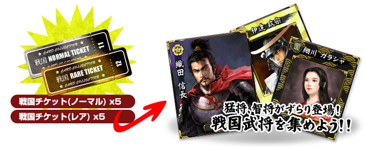 「アンケート」に回答していただいた方全員に、「my GAMECITY カードコレクション」で使用できる「戦国チケット」を10枚セット(ノーマル5枚、レア5枚)でプレゼントします。