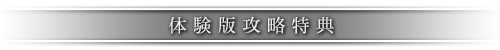 α体験版、β体験版または最終体験版をプレイし、「制覇の証」をお持ちの方への特典となります。