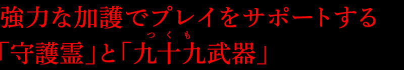 また、敵を倒し、ゲージを溜めることで「九十九武器」という強力な攻撃が可能になります。「九十九武器」も宿している「守護霊」ごとに特徴が異なります。