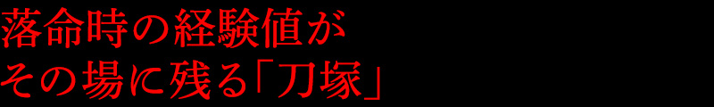 再び落命した位置まで戻り、「刀塚」を回収することで落とした「アムリタ」と「守護霊」はプレイヤーへと戻ってきますが、その前に落命すると「刀塚」は消失し、「守護霊」は戻りますが「アムリタ」は失われます。