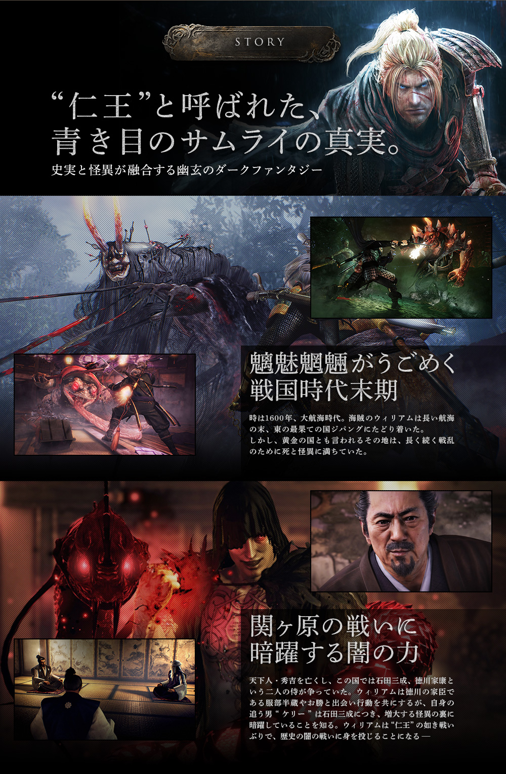 時は1600年、大航海時代。海賊のウィリアムは長い航海の末、東の最果ての国ジパングにたどり着いた。しかし、黄金の国とも言われるその地は、長く続く戦乱のために死と怪異に満ちていた。