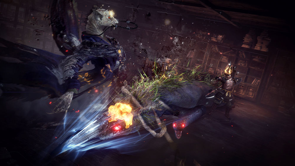 煙々羅の妖怪技。高熱の煙の竜巻に変化して突撃する。発動中は左スティックで任意の方向に移動できるので、大量の敵を巻き込むのも一体を集中的に攻撃するのも自由自在だ。