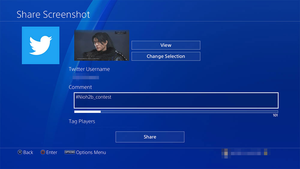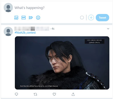 Follow the “How to Upload to Twitter” steps listed below then share it on Twitter using the hashtag #Nioh2b_contest.