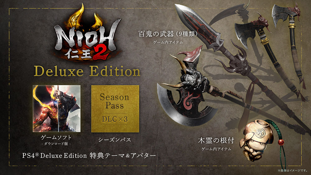 『仁王2』DLCでは、本編からさらに時代を遡り、本編に至るまでのストーリーを補完します。 新たな妖怪や人物、武器種などが追加予定です。 現在予約受付中のDeluxe Editionでは、3つの大型DLCを含むシーズンパスが付属します。