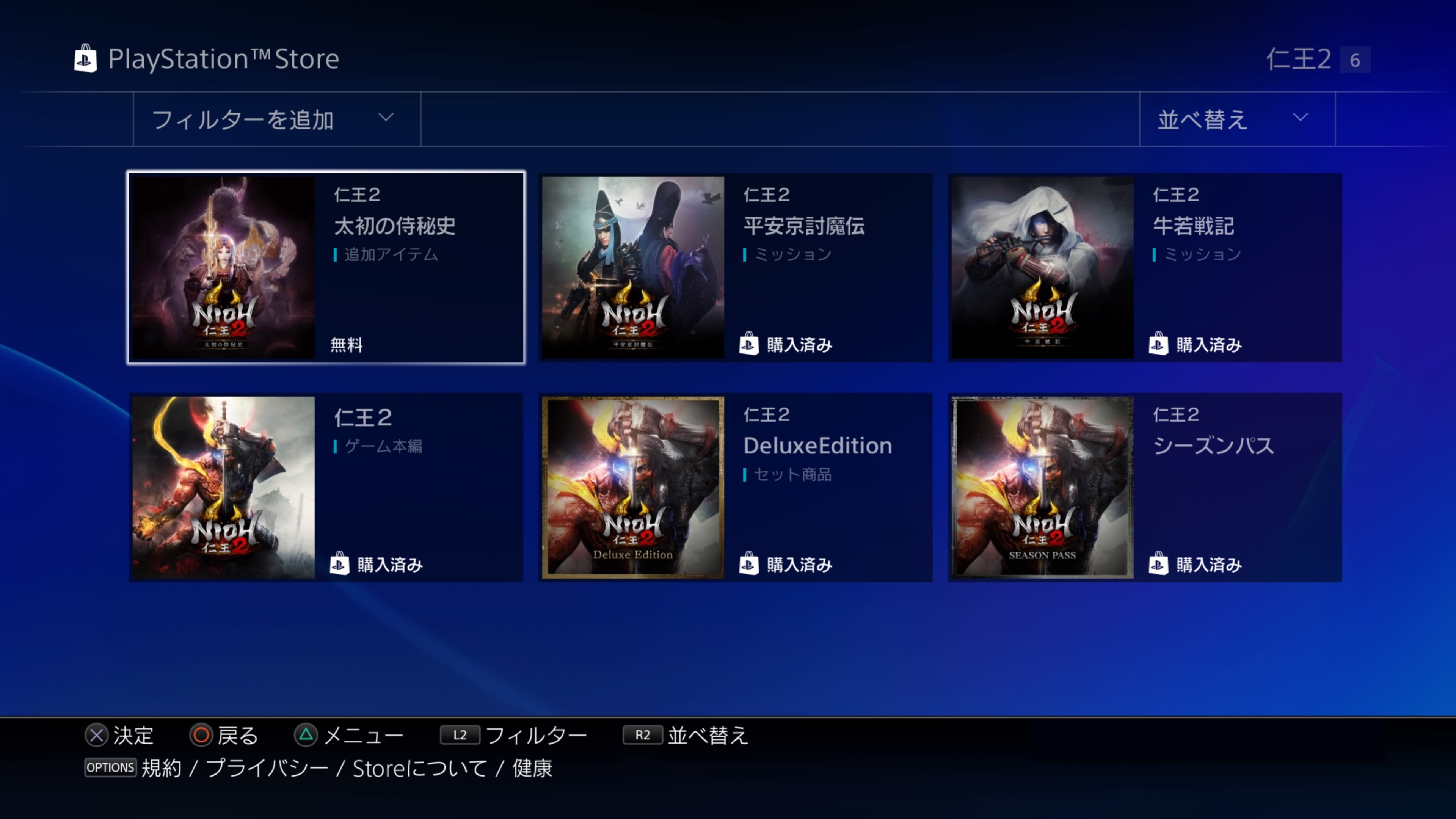 ①タイトル画面で「□ボタン」押し、ストアにアクセス