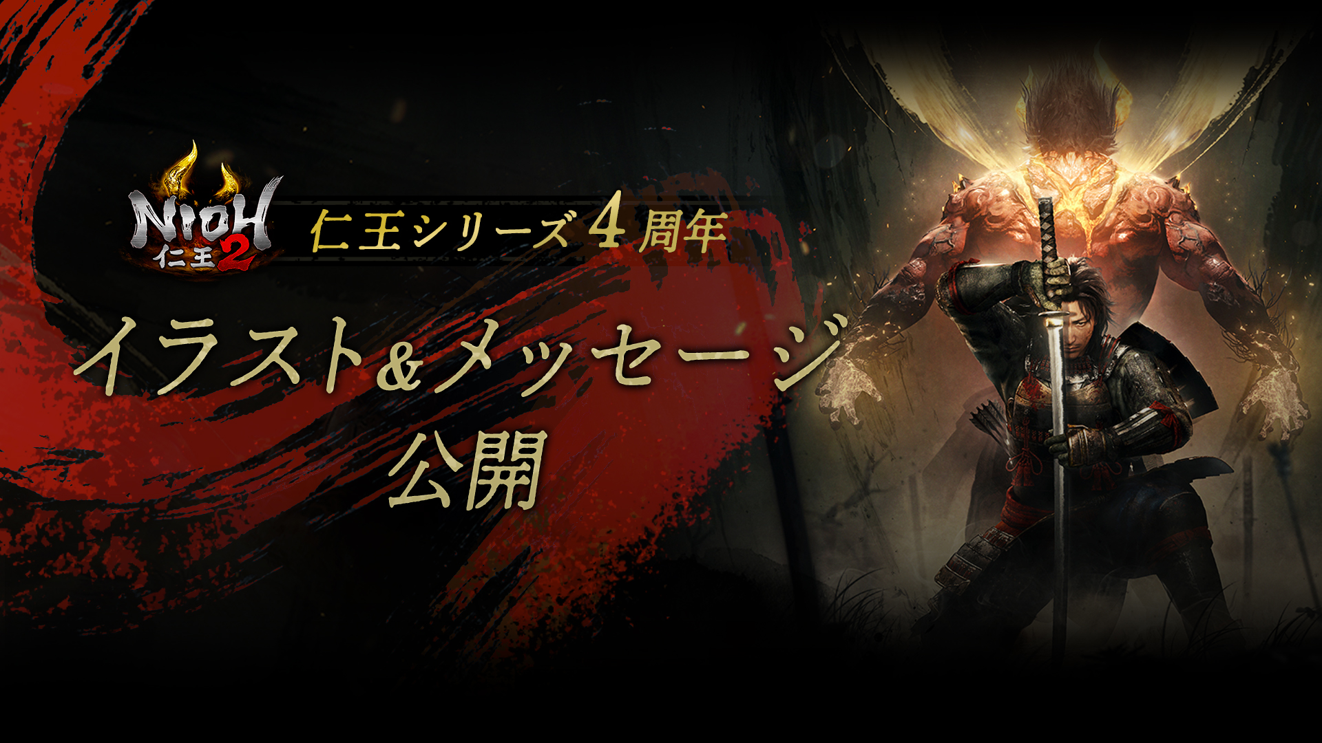 2021年2月4日(木)の『仁王2 Complete Edition』の発売、さらに2月9日(火)の「仁王シリーズ4周年」にあわせて、様々なイラストレーター/漫画家の方からの描き下ろしイラストや、仁王シリーズに携わっていただいた方からのメッセージをいただいております。