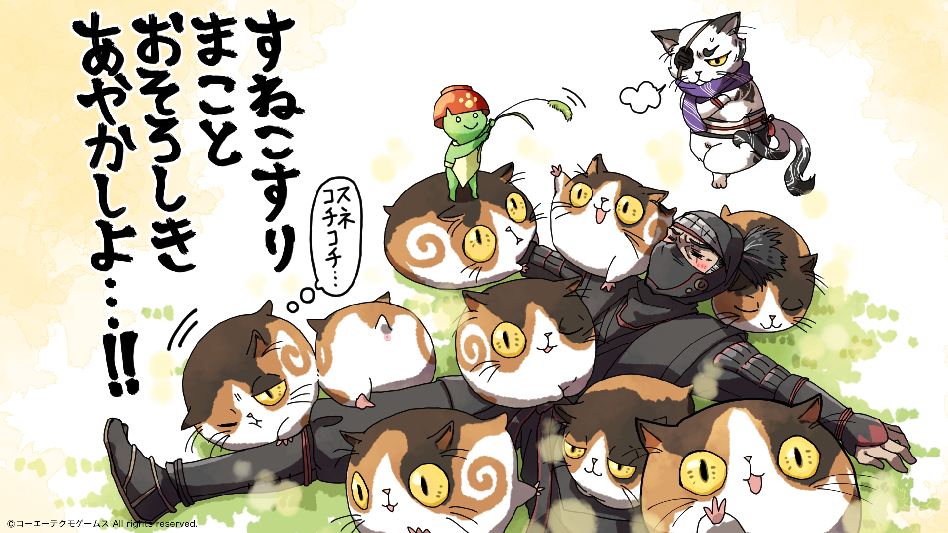 仁王シリーズ4周年おめでとうございます ここに語りきれぬほど魅力が詰まった最高のゲームです 私はゲームは得意ではないけど、これは絶対クリアしたいって思えたものです!落命しまくりの中の癒し、すねこすりはお耳ぺしょっとして眠っている姿も最高に可愛い #仁王絵巻 #仁王シリーズ4周年