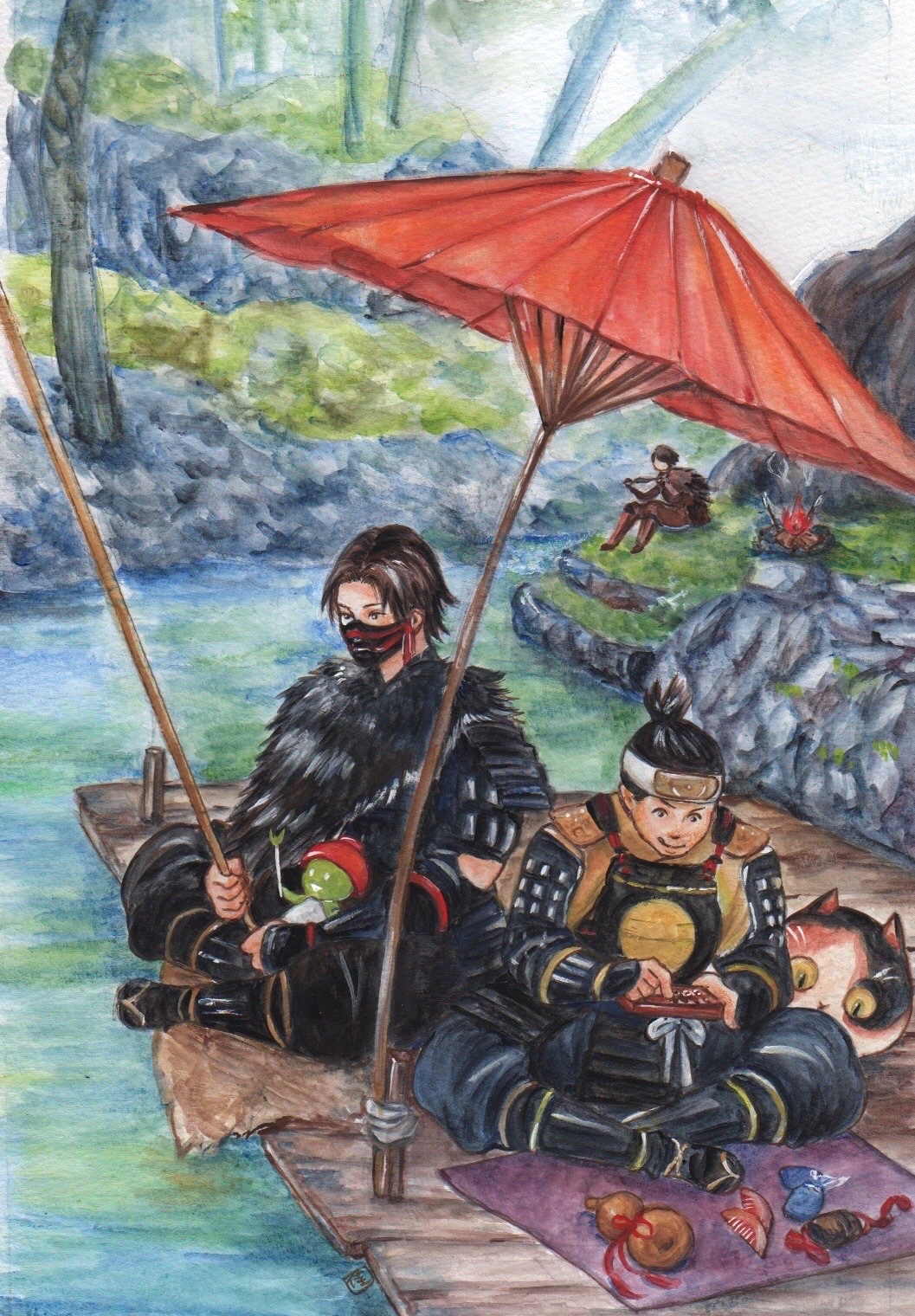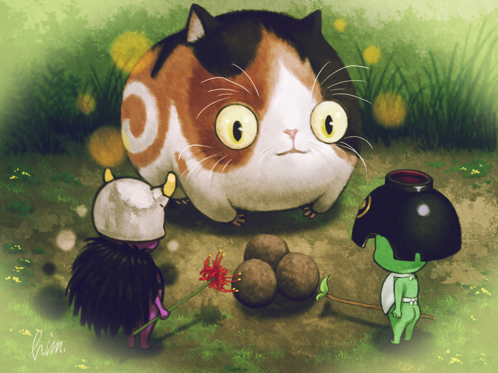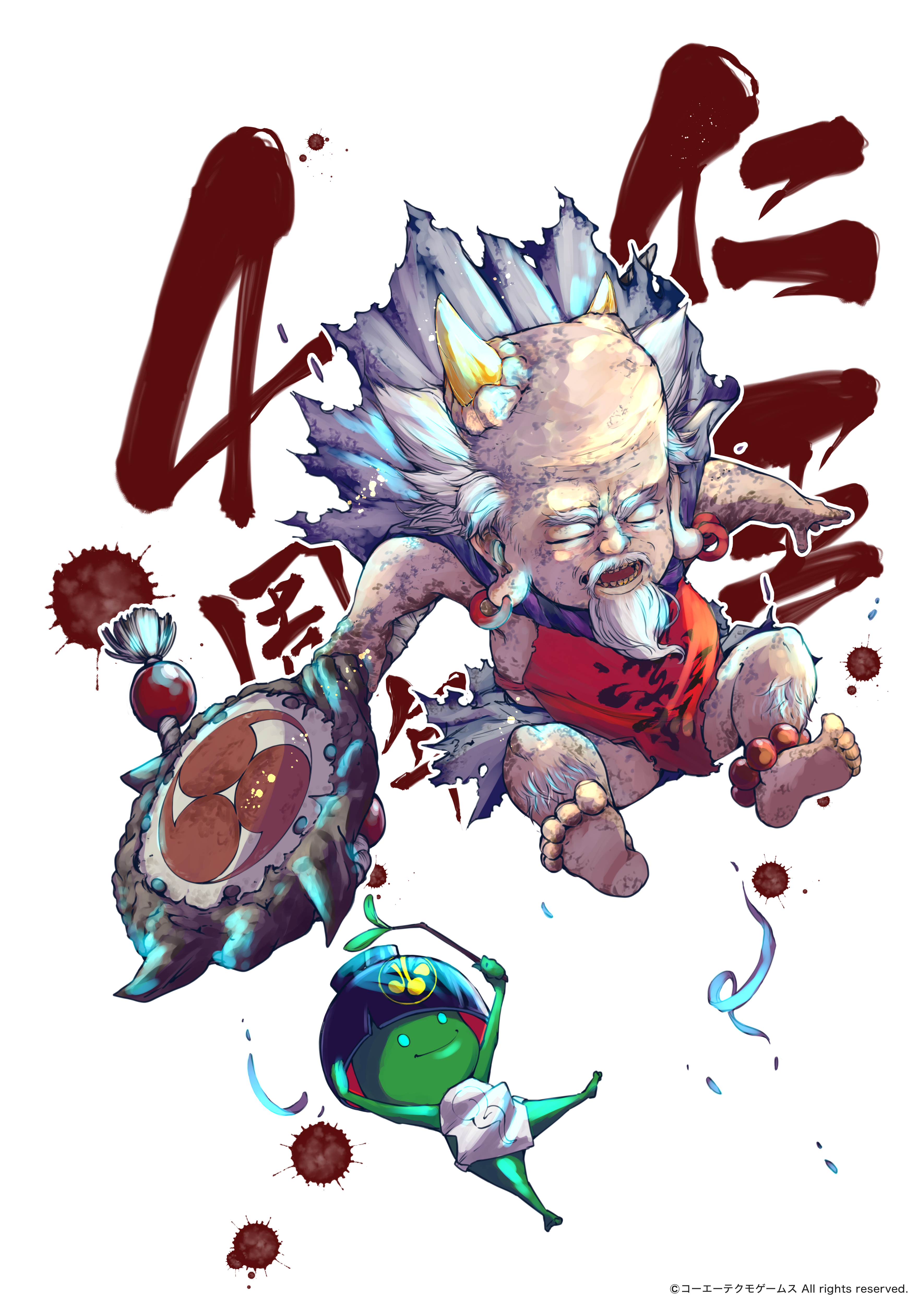 和風と妖怪とふんどしが大好きな私のハートをわし掴みにしてくれた神ゲー仁王がついに4周年!こいつぁめでたい!! これからも仲間と楽4んでいきます!! 按針のために心をこめて仙薬を丸める木霊ちゃん(薬師)を描きました #仁王絵巻 #仁王シリーズ4周年
