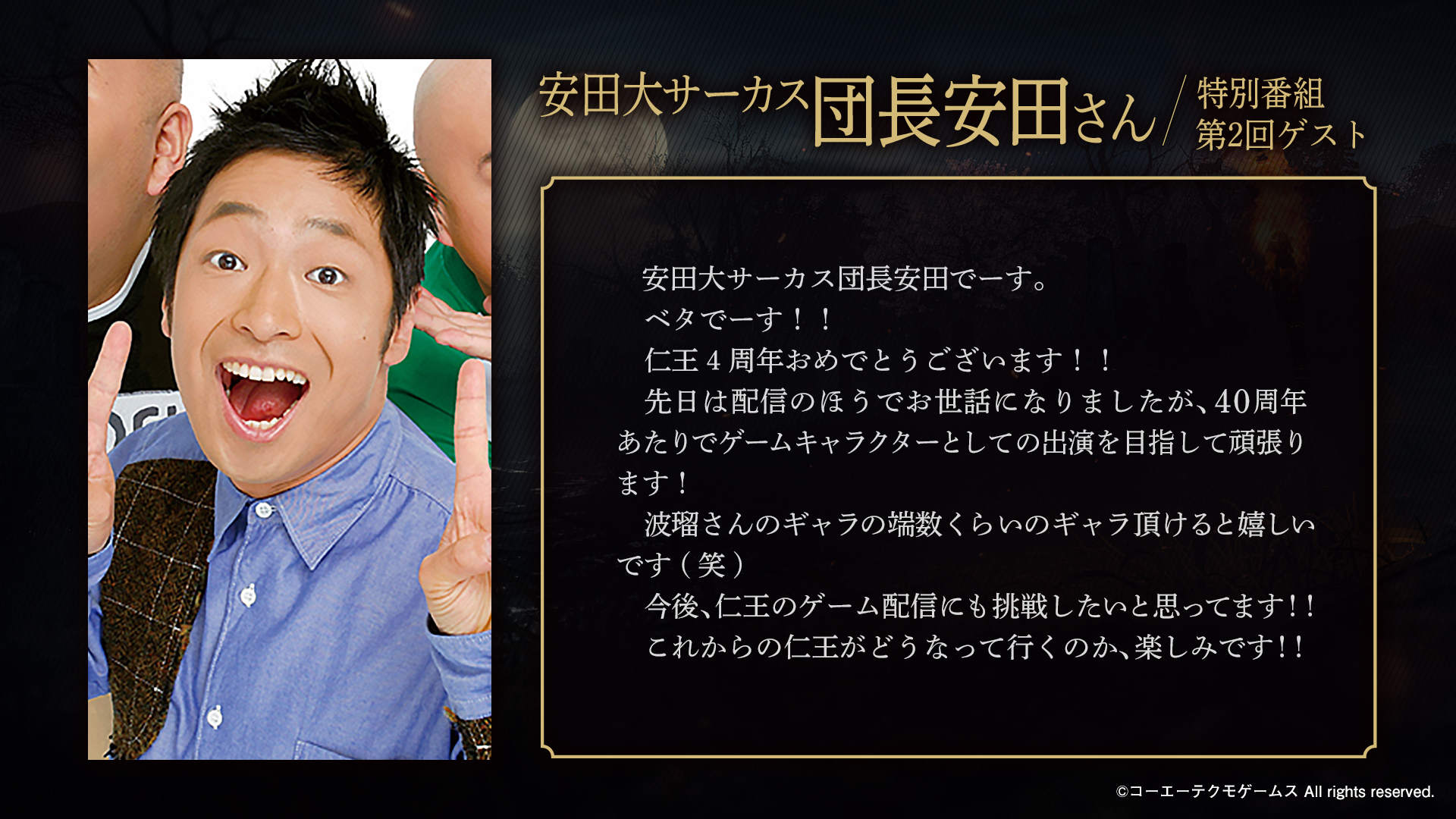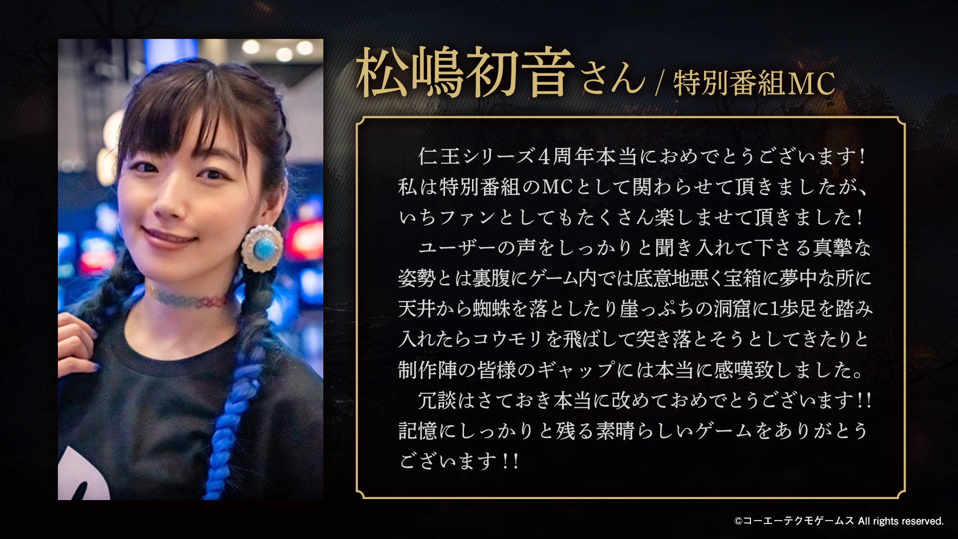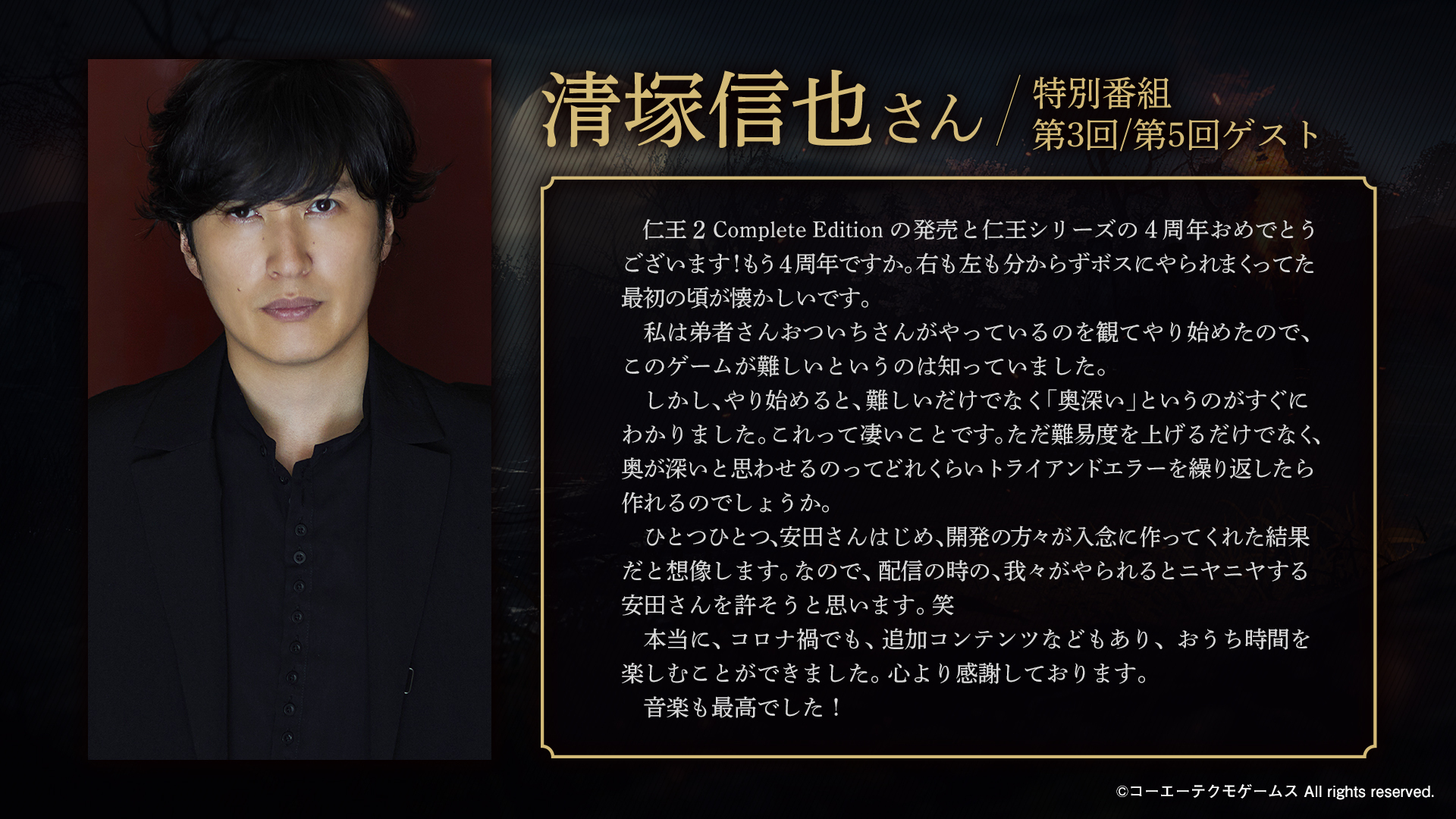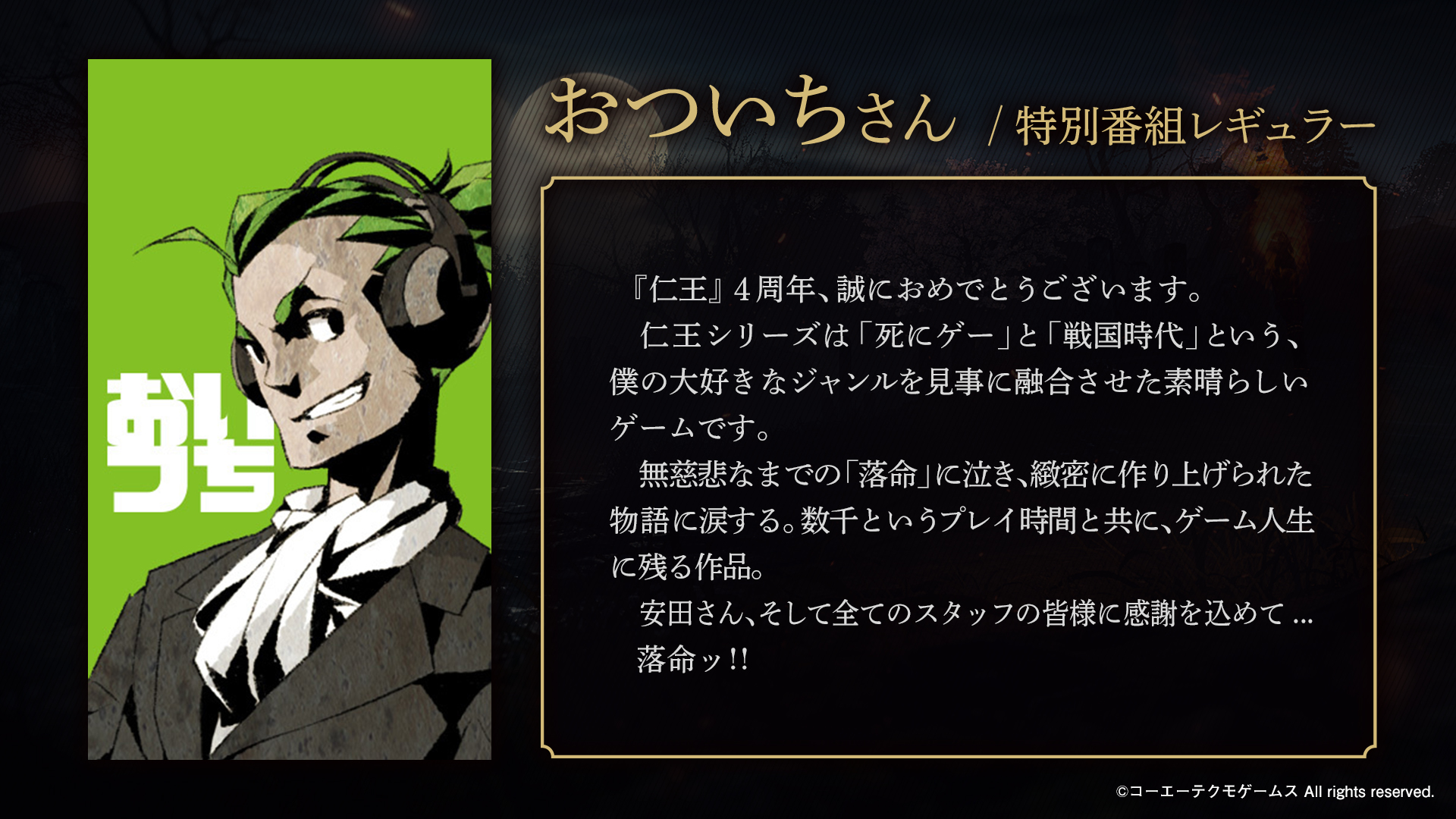 4周年おめでとうございます。 「仁王」というタイトルが発表されてから、今回のコンプリートエディションに至るまでかなり長い歴史があります。そう考えると4周年以上ですね。 多くの人に愛されている作品でもあります。 仁王3も楽しみにしております。 #仁王シリーズ4周年