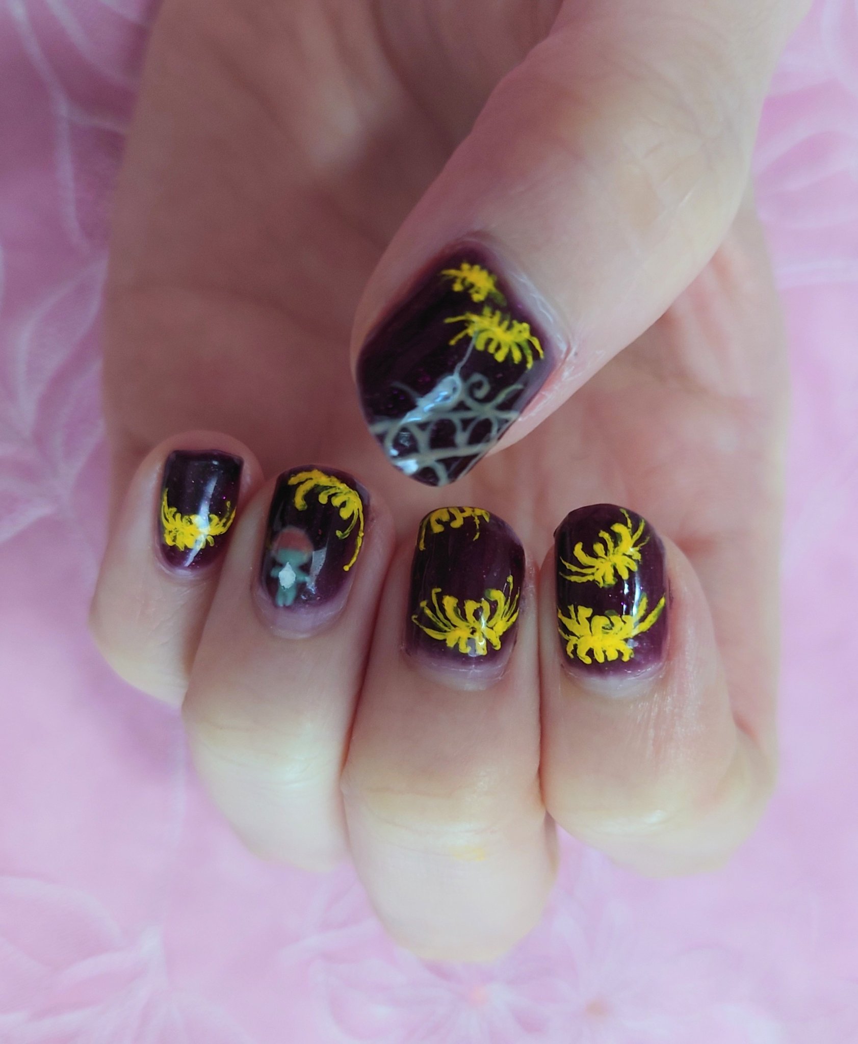 仁王シリーズ4周年! 発売日0時から始めるくらい大好き 先日クリアした、 「見果てぬ夢」のロケーションが素敵だったので爪に描きました 金彼岸花はアクリル絵の具で…… 親指の模様も、ステージ装飾を模したものに #仁王絵巻 #仁王シリーズ4周年