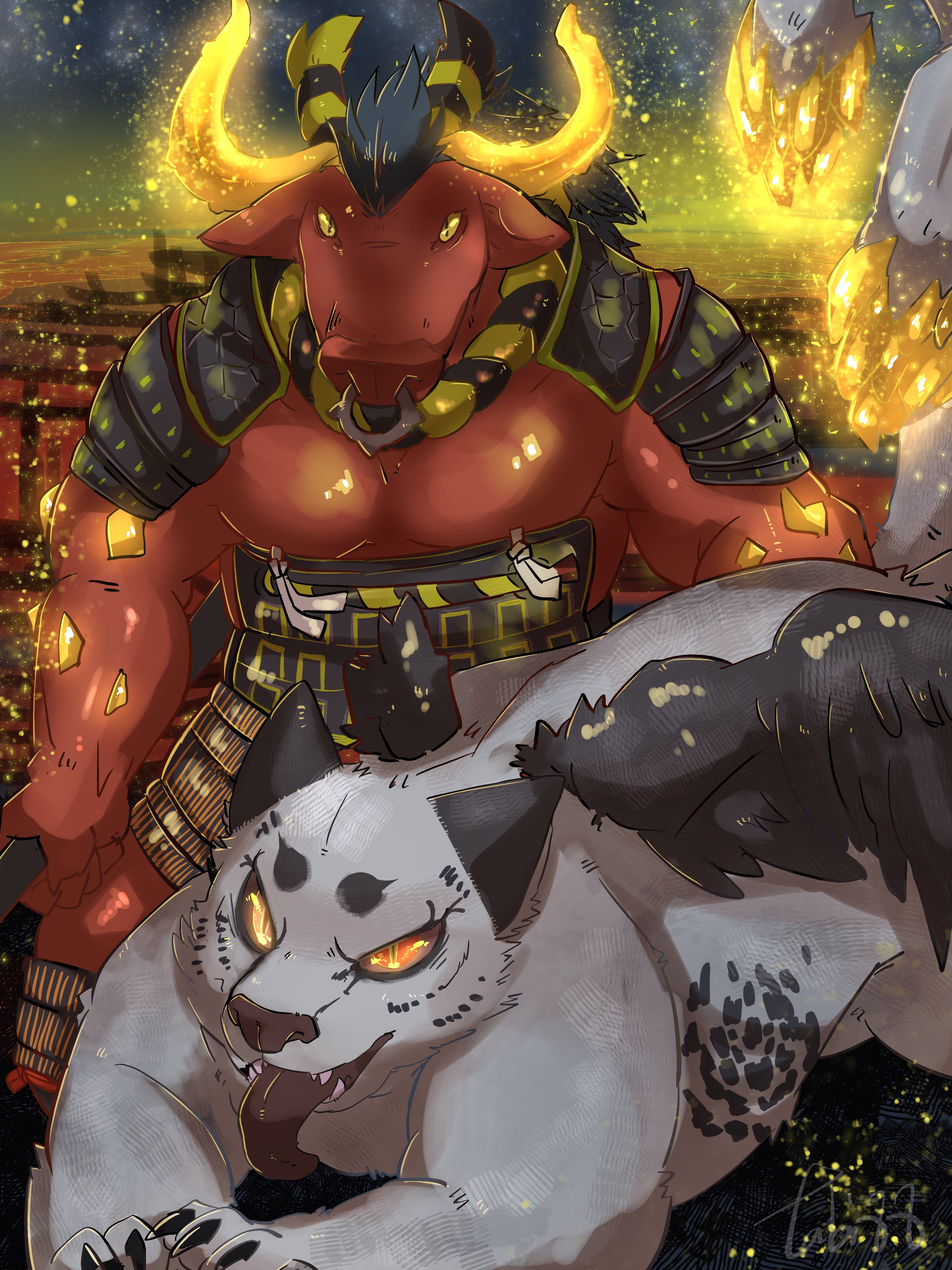 仁王シリーズ4周年、誠におめでとうございます!! イラストは『仁王2』より、最初のボス・馬頭鬼との戦いの場面を! 本当~になかなか倒せなくて、やっと勝てた時の達成感で死にゲーにどっぷりハマってしまった、思い出のボスです。これからも楽しく落命します★ #仁王絵巻 #仁王シリーズ4周年