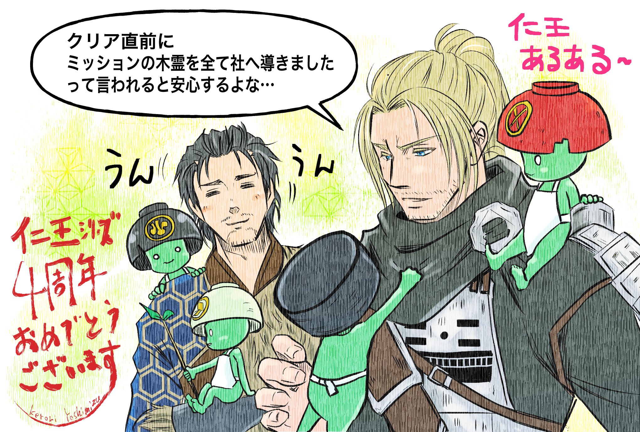 #仁王シリーズ4周年 4周年おめでとうございます! 私にとって仁王は最初の死にゲーであり、同ジャンルに興味を持つキッカケです。 仁王のおかげで様々な死にゲーに触れるようになりましたし、今まで知らなかった武器や妖怪を知る事が出来ました! 今後、益々の盛り上がりを期待しています!