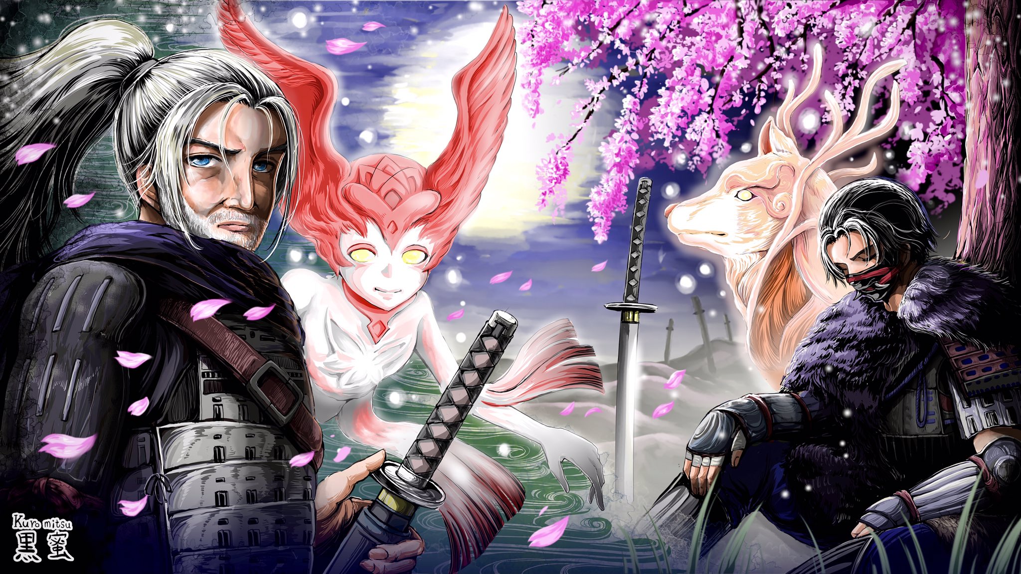 仁王シリーズ4周年おめでとうございます!仁王2クリア時に、込み上げる想いをぶつけるように描いたものです。死にゲーが大の苦手でしたが、仁王はどちらもトロコンまで頑張れるほど面白かったです。戦う事が楽しいアクションとお話でした。ちゃんと物語ありますよ安田P! #仁王絵巻 #仁王シリーズ4周年